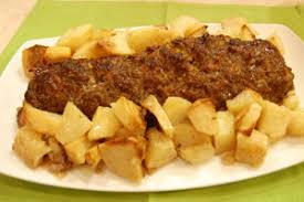 Βάλτε και λίγες πατατούλες δεξιά και αριστερά από το ρολό, αλατοπιπερώστε, ρίξτε λίγο λάδι και 1/2 ποτήρι του κρασιού νερό. Σκεπάστε καλά με αλουμινόχαρτο όλο το πυρέξ, κάντε μια τρυπούλα με οδοντογλυφίδα για τον ατμό και ψήστε σε προθερμασμένο φούρνο στους 200 βαθμούς για 1,5 ώρα. Ξεσκεπάστε με προσοχή (βγαίνουν καυτοί ατμοί), ελέγξτε αν οι πατάτες είναι ψημένες. Αν είναι έτοιμο, τοποθετήστε το στο γκριλ για 5-10 λεπτά ξεσκέπαστο για να πάρουν χρώμα οι πατάτες.